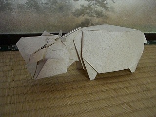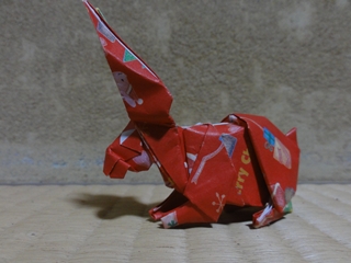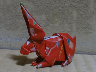 作者:宮島登、うさぎ。 謹賀新年。 卯年なので、うさぎ。 宮島氏のサイトで期間限定で折り図が公開されているもの。 公開時から知っているけど、今では折り図入手困難なので、 持っていない方はお早めに。 作例の紙は、クリスマス用の包装紙。 (宮島氏のサイト) http://www.h5.dion.ne.jp/~origami/ 今年もそれなりのペースで更新していきます。 特に、先般、はうすで発売されたエリック・ジョワゼル氏の作品集 ─折り紙のマジシャン─を購入した際に、 ちまたで話題のカラペラピスを買ったので、それを使った作品を近々。 |