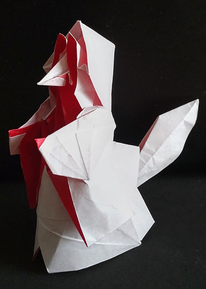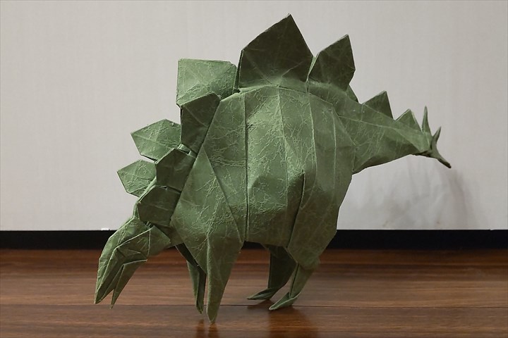 PR 作者:中 一隆、ねじり折りの本格的なバラN4 このブログは、2007年8月に始めていて、 最初に紹介したのは、川崎の極大のバラ。 風を折る (shinobi.jp) 今回のバラは、中さんのバラ。 この月日の中でバラも進化していた。 20cmくらいの手元の紙で折ってみた。 黄色は、15cmの普通折り紙。 作者:川畑文昭、ステゴサウルス 川畑氏つながりでステゴサウルス 2015年バージョンで紙はおそらくレザック66の39㎝ リクエストで折ったもの 最初、きぬもみで折って、セロハンテープで補強したけど、 破れてしまって、はるか昔に買った(おそらく)レザック66を使ってみた。 氏のステゴサウルスは↓でも紹介したけど、 尾の先の骨盤などは、少々わかりにくく、一見では難しい。 http://mthiyodori.blog.shinobi.jp/Entry/164/ 前のバージョンで 「創作家自身の色を出しつつ、 このステゴサウルスを超えるリアルさを追求するのは、 おそらくは、困難なことと言えるだろう。」と書いたけど、それをクリアするのは、さすがは川畑さんの一言。 |