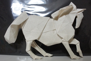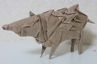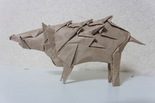 × [PR]上記の広告は3ヶ月以上新規記事投稿のないブログに表示されています。新しい記事を書く事で広告が消えます。 作者:Nicolas Gajardo Henriquez、Caballo. Caballoはスペイン語で馬のこと。 作者は、チリのニコラ・ガバルド・エンリケスさん。 正直、彼または彼女について、他にいくつか作例があること以外、 私は何も知らない。 馬は、幾つもの作例があって、ここでも 小松さん http://mthiyodori.blog.shinobi.jp/Entry/23/ や ジョン・モントロールさんhttp://mthiyodori.blog.shinobi.jp/Entry/32/ といった作品を紹介してきたけど、 最近折っている馬はこの作品。 たてがみや尾の躍動感だけでなく、 頭部の一部を除いて、折り紙的に無理のない構造をしている。 おまけのもう一枚。 ↓は初めてこの作品を折った時のもの。 PR 作者:布施知子、花びらのユニット ユニット折り紙とは、複数枚の同じパーツ(これをユニットという。)を 組み合わせる折り紙。 ユニットには、左右対称なものになる場合もある。 布施氏はもう数十年にわたり、この世界を牽引する「ユニットの女王。」 箱や皿の作品群でも知られる。 今回は、おりがみ新世界に再掲された「花びらのユニット」。 これは、笠原邦彦氏の命名で、本人は別の名前を付けていたと 記憶しているけど、正確に思い出せないので、この名前を使った。 作例は7.5cmの折り紙30枚。 この紙では、糊が付かなかったので、ちょっと工夫して留めてある。 (12枚組や6枚組の時は、糊付けなしでしっかり留まる) 紙の長さが20面体の辺の長さと等しくなるので、 このユニットは小さい紙で折るのだけど、 はるか昔に15cmの紙で折ったことがあるのを思い出した。 作者:川畑文昭、猪 吉野氏の猪を紹介した時、 「猪の作例はあまり多くない。」と書いた。 http://mthiyodori.blog.shinobi.jp/Entry/135/ その時に思いついたのは、この作品と宮島氏の作品くらい。 吉野氏の作品へのオマージュ。 やや厚めの紙で折ってみた。 猪のイメージと裏腹に結構かわいい。 |