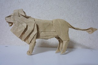 × [PR]上記の広告は3ヶ月以上新規記事投稿のないブログに表示されています。新しい記事を書く事で広告が消えます。 作者:神谷哲史、ライオン。 2007年に、コンベンション中に15センチの紙で折ったライオンを掲載した。 http://mthiyodori.blog.shinobi.jp/Entry/7/ 今回は、30センチくらいのコルキーで折ったもの。 前足が厚くなるので、70㎏の紙を使った。 やはり、ある程度の紙で折ると泊が出る。 最近、とある事情で、紙に触れる時間が増えたので、 別館(このブログ)の更新が増えると思う。 PR |