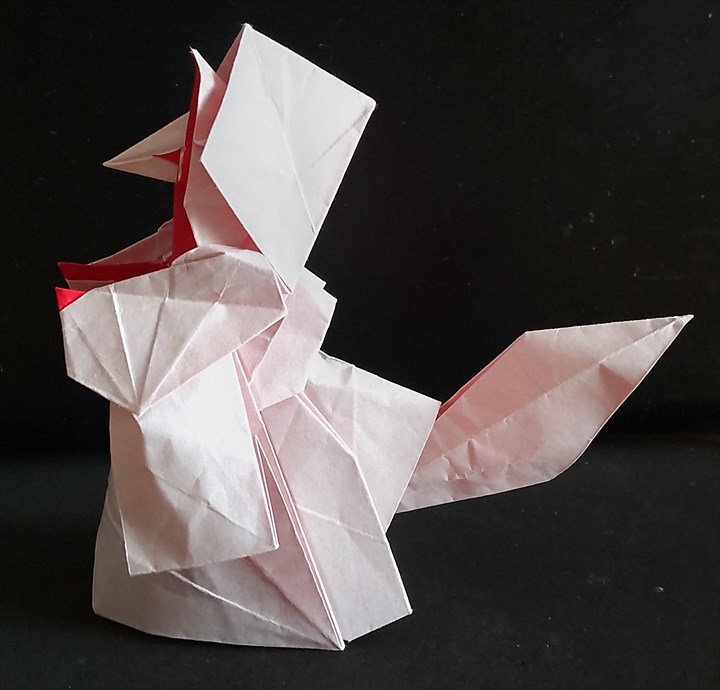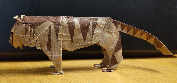 PR 作者:中 一隆、ねじり折りの本格的なバラN4 このブログは、2007年8月に始めていて、 最初に紹介したのは、川崎の極大のバラ。 風を折る (shinobi.jp) 今回のバラは、中さんのバラ。 この月日の中でバラも進化していた。 20cmくらいの手元の紙で折ってみた。 黄色は、15cmの普通折り紙。 作者:川畑文昭、ステゴサウルス 川畑氏つながりでステゴサウルス 2015年バージョンで紙はおそらくレザック66の39㎝ リクエストで折ったもの 最初、きぬもみで折って、セロハンテープで補強したけど、 破れてしまって、はるか昔に買った(おそらく)レザック66を使ってみた。 氏のステゴサウルスは↓でも紹介したけど、 尾の先の骨盤などは、少々わかりにくく、一見では難しい。 http://mthiyodori.blog.shinobi.jp/Entry/164/ 前のバージョンで 「創作家自身の色を出しつつ、 このステゴサウルスを超えるリアルさを追求するのは、 おそらくは、困難なことと言えるだろう。」と書いたけど、それをクリアするのは、さすがは川畑さんの一言。 |